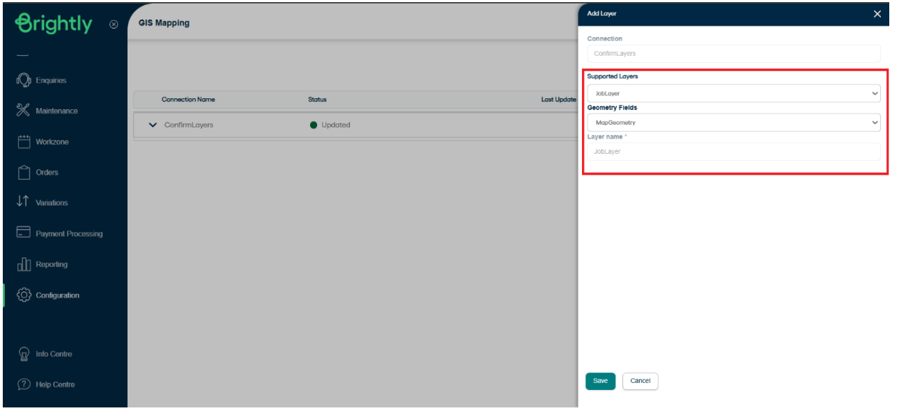 Go to the GIS Mapping screen and click on Add Connection. Fill in the following details: