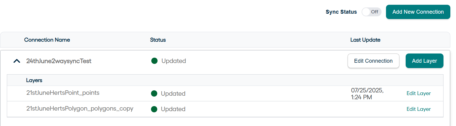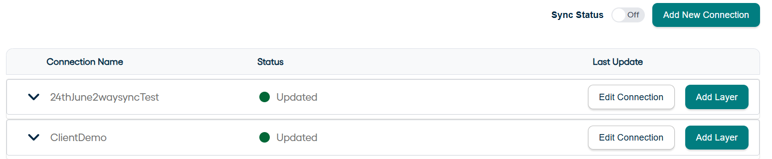 Begin adding layers by clicking on Add Layer button present in the tab for one’s respective connection. In this case, it will be the button in front of Connection_2waysync.
