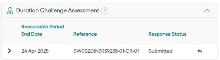 On expanding the 'Duration Challenge Assessment' section, further details of Duration Challenge is displayed.