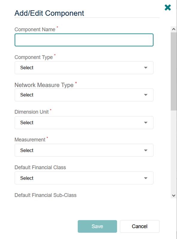 Components are used for recording dimensions, service criteria (e.g. condition), valuations, and performing accounting transactions in the Financial Asset Register. Components can be added using the add (+) button or edit existing Components by clicking on the pencil icon