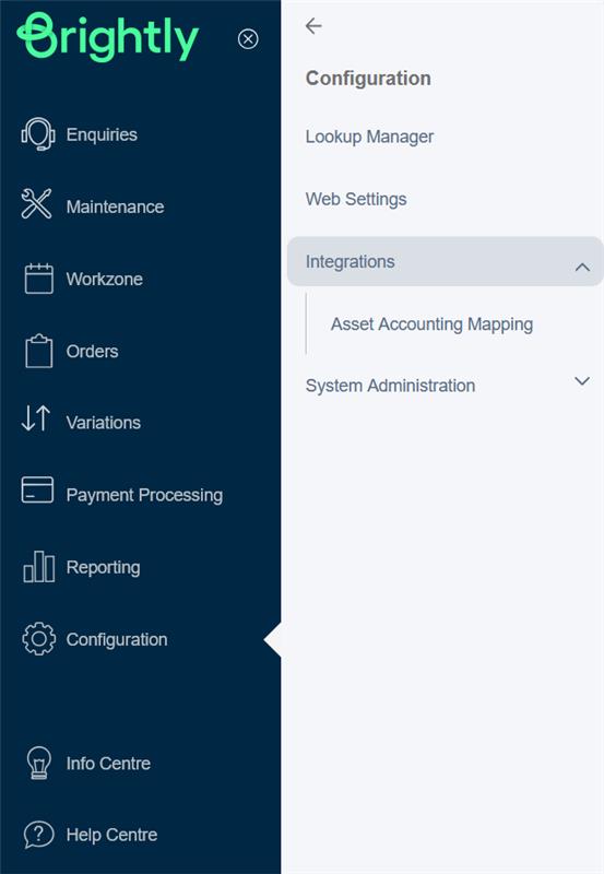Note: The Asset Accounting Mapping option will only be available if it’s been configured for you tenant. If the option is not available, please contact your Account Manager for further support.